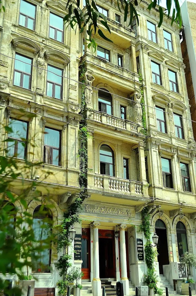 Grand Hotel de Londres is a historic hotel located in the Beyoğlu district of Istanbul, Türkiye. Established in the late 19th century, the hotel is renowned for its preserved Belle Époque atmosphere, antique furnishings, and panoramic terrace views overlooking the Golden Horn and the historic peninsula.