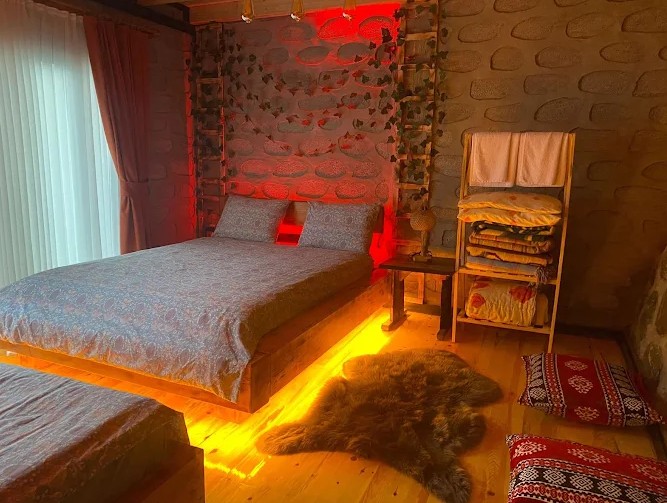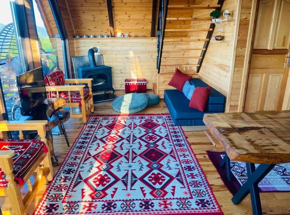 Here you will find the tranquility of nature, the warmth of wood, and the beauty of simple living all in one place. Our bungalow is specially designed to make you feel at home, combining naturalness and comfort. Here is a brief introduction to our rooms: Living Room & Kitchen Area Our living room, filled with daylight thanks to its large windows, has a comfortable seating area where you can relax and enjoy the view. The open kitchen is equipped with the basic appliances you may need — you can prepare your coffee and start enjoying your time on the veranda. Bedroom In our bedroom, furnished with natural wood textures, a deep sleep awaits you with a quality bed and soft linens. Silence and the sounds of nature offer a truly relaxing experience. Bathroom In our clean and spacious bathroom, we have provided a comfortable area with hot water and natural touches. Towels and basic toiletries are at your service throughout your stay. Veranda & Outdoor Area Our spacious veranda located at the front of the bungalow is ideal for your morning coffee or afternoon book enjoyment. You can swing on the swing to the sound of birds and watch the stars.