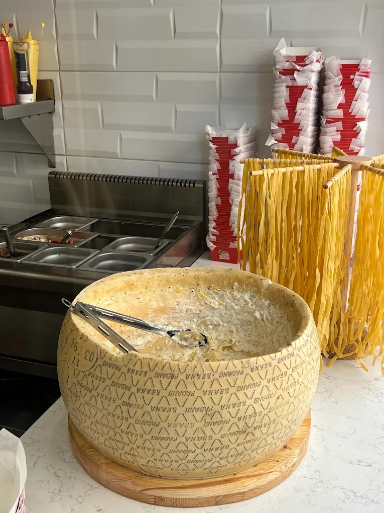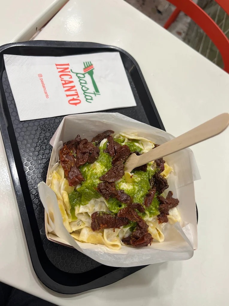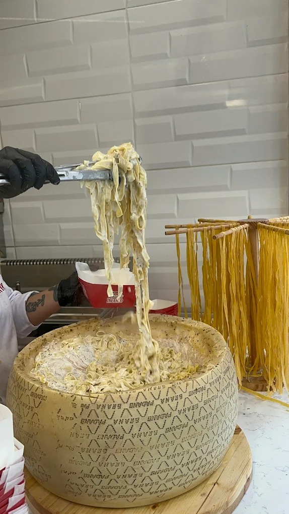 Pasta Incanto specializes in fresh pasta dishes prepared daily with a variety of sauces and ingredients. Guests can choose from multiple pasta types and flavor combinations, creating personalized meals tailored to their preferences. The restaurant is particularly recognized for serving pasta prepared in a Parmesan cheese wheel, enhancing both flavor and presentation.