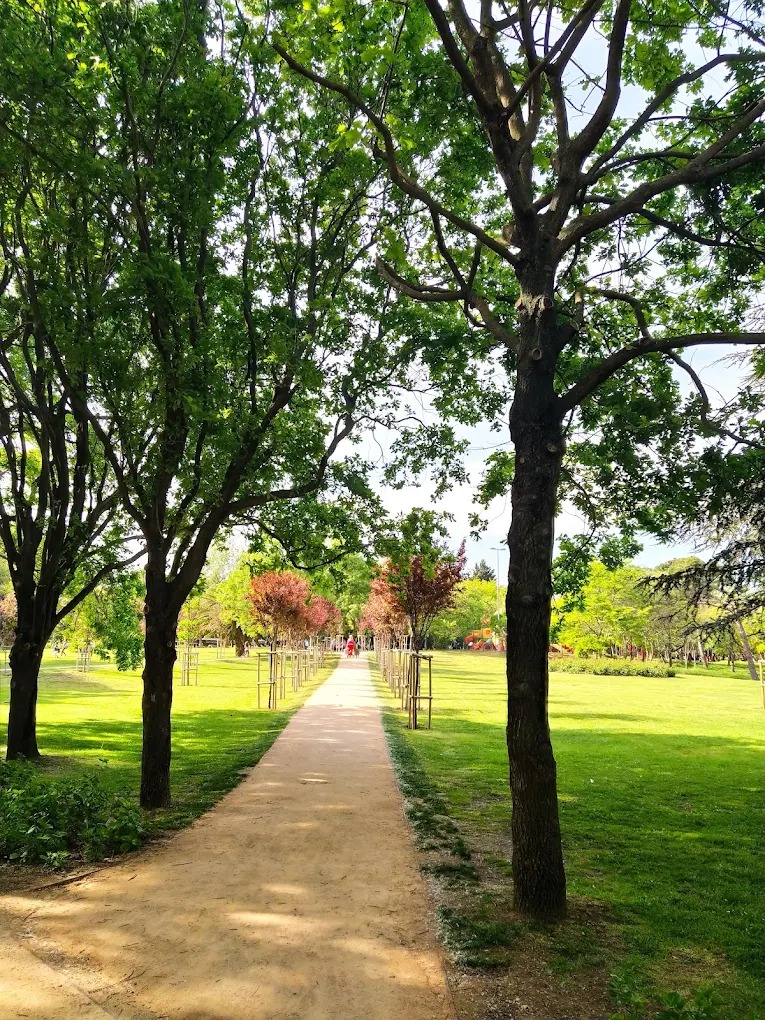 The park features a mix of wooded areas and open green spaces: