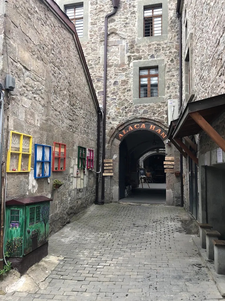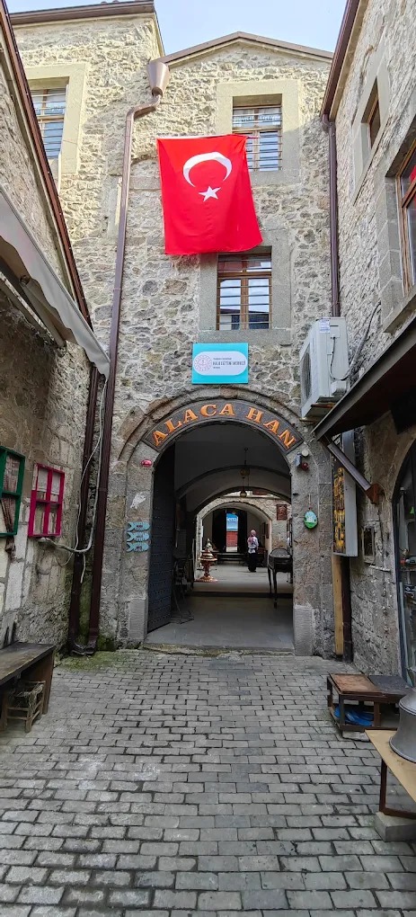 The construction date of Alaca Han, located on Bakırcılar Street in the Bakırcılar neighborhood of Trabzon city center, is unknown as it has no inscription. However, based on its architectural style and elements, it is believed to date back to the 18th century.