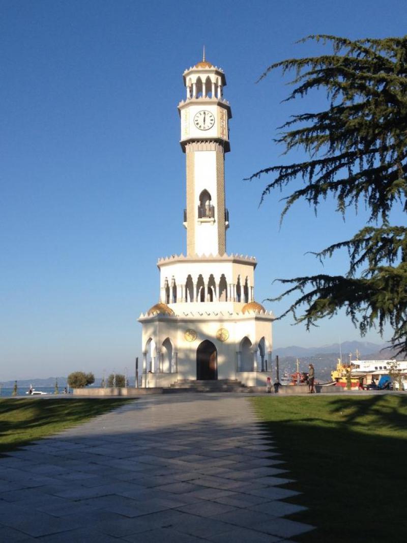 The 25-meter-high Chacha Clock Tower, which was rebuilt on Batumi Boulevard in 2012 as an exact replica of a building by the sea in Batumi; It also draws attention with its similarity to the Izmir Clock Tower.