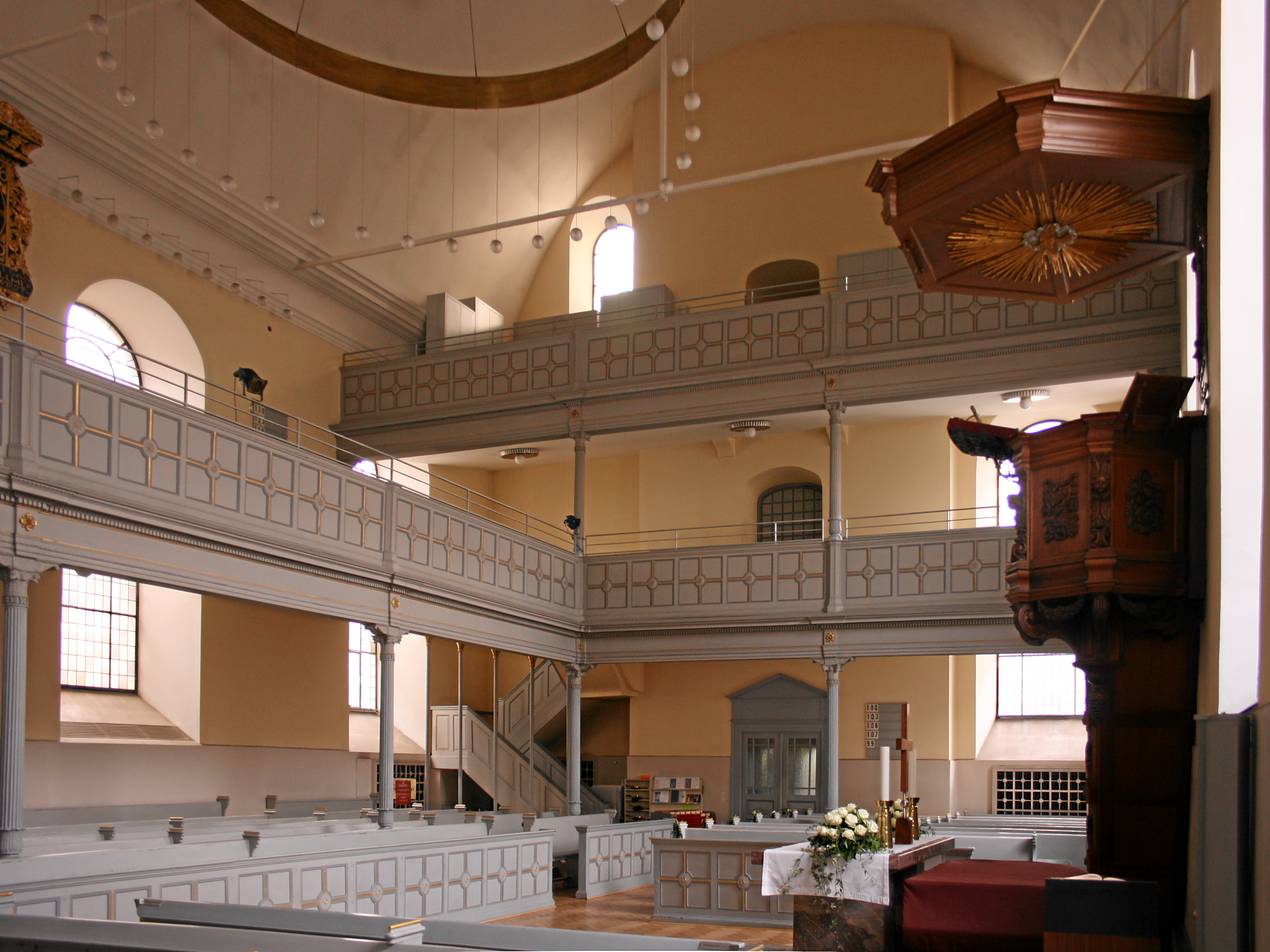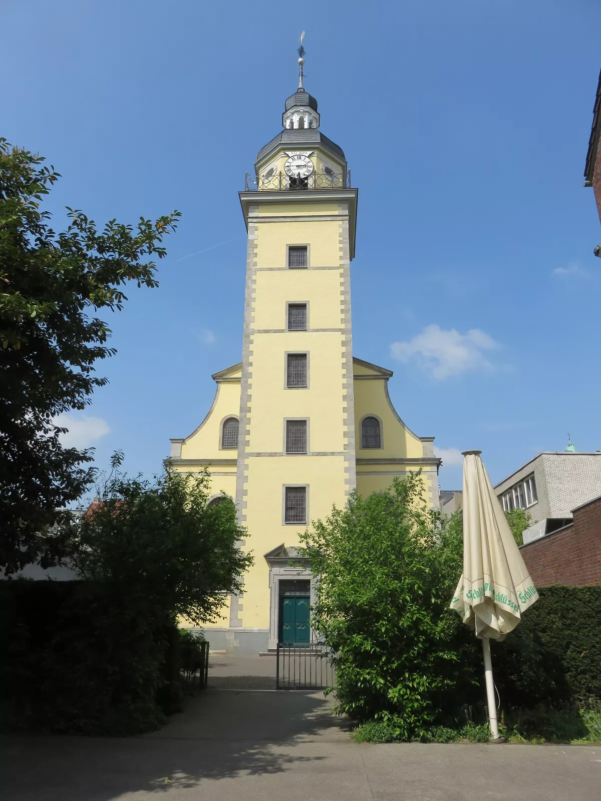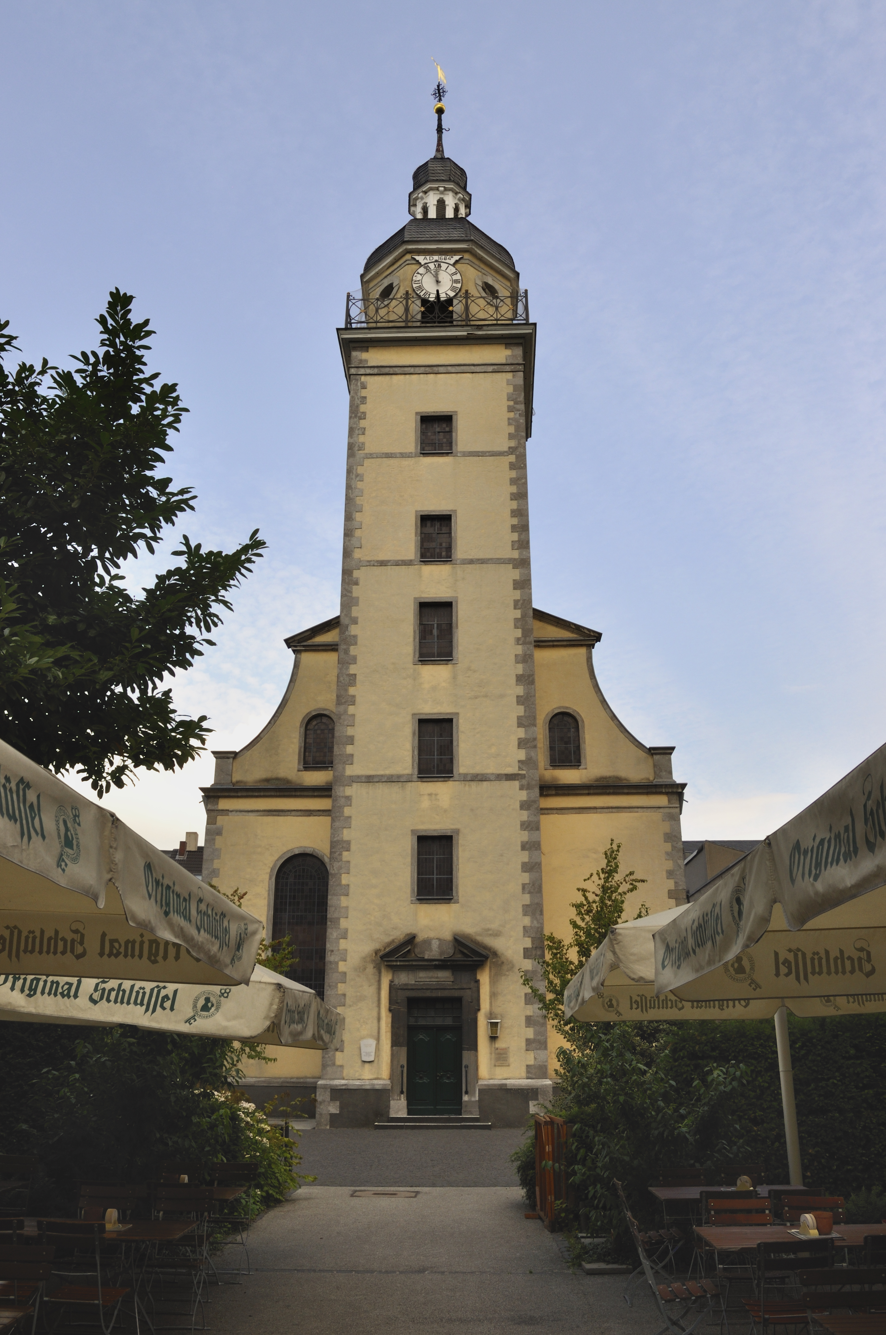 When the counter reformation began in Düsseldorf, activities of the reformed Protestant church were still tolerated for a while. A Predigthaus (preaching house) was built on the property of the later church in 1610, but had to be closed in 1614 when the tolerance ended. Protestant Christians were permitted to build churches again only in the second half of the 17th century. The Neanderkirche was built from 1683 to 1687. The church was already inaugurated in 1684. It was named after Joachim Neander in 1916. The Neanderkirche is a hall church of the early Baroque. It is now the church of the parish Evangelische Kirchengemeinde Düsseldorf-Mitte.