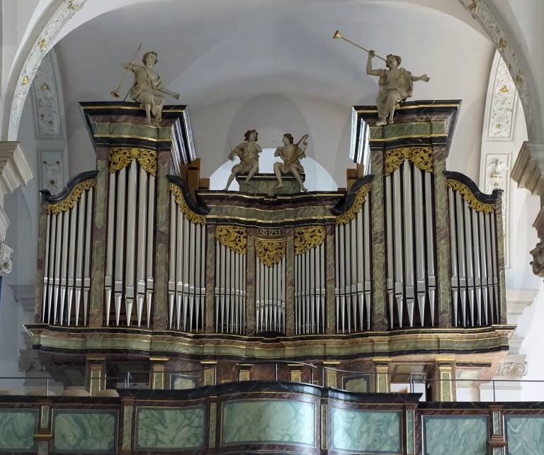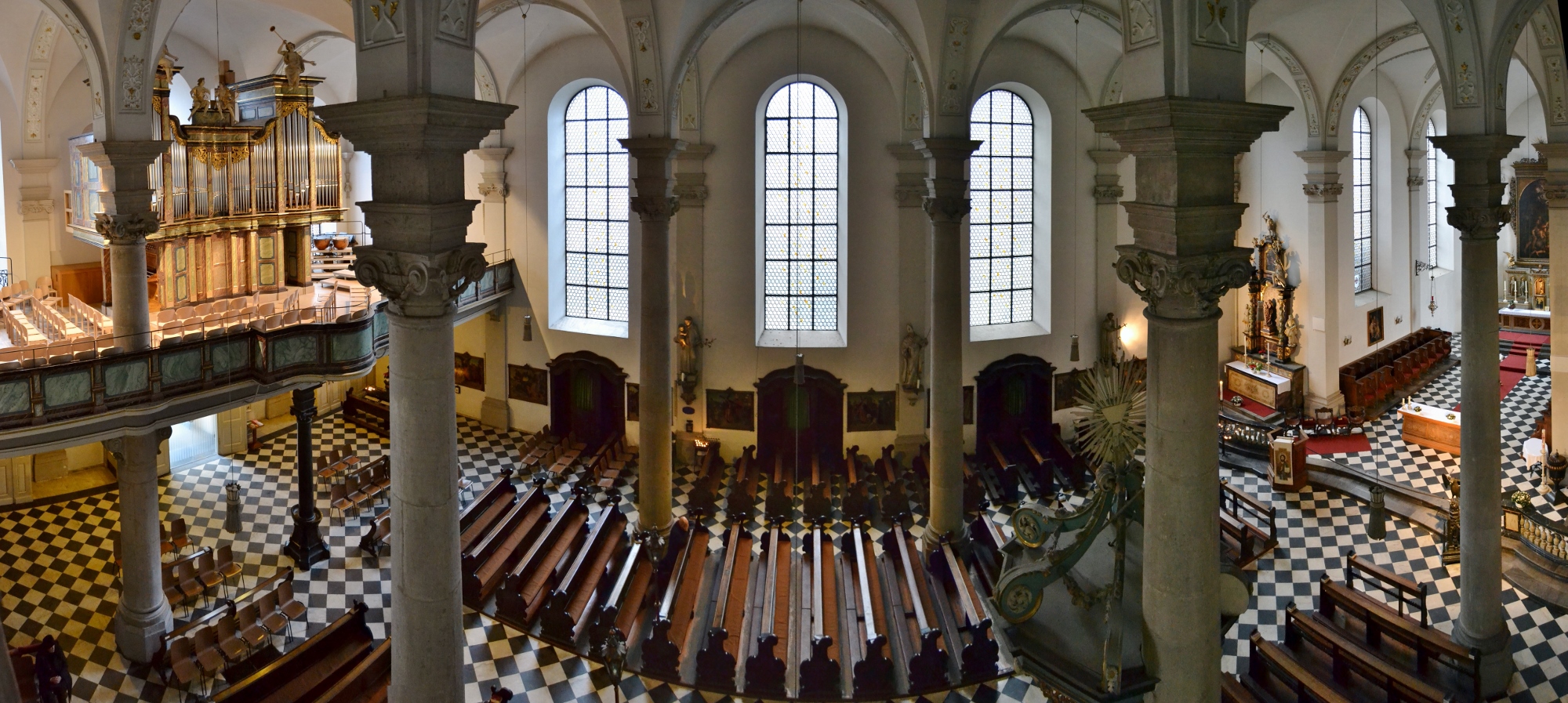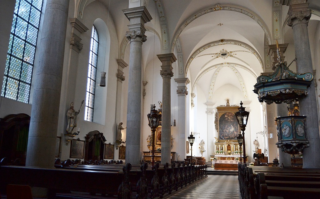 St. Carlstadt's Düsseldorf district, often called the Maxkirche today. Maximilian Catholic Church is a late Baroque church that emerged from a defunct Franciscan monastery in 1804. The monastery, whose living and study rooms are located in the neighboring Maxhaus, was founded in the 17th century and its present church was built in the 18th century. The bronze eagle lectern from 1449 was originally created for Altenberg Cathedral. The choir stalls come from the previous 17th century church. The 14 oil paintings on the side walls form a Way of the Cross and belong to Heinrich Nüttgens, the church painter from Nazareth, who created them in 1903. The adjoining former monastery building "Maxhaus, Katholisches Stadthaus" now has a restaurant, among other things.