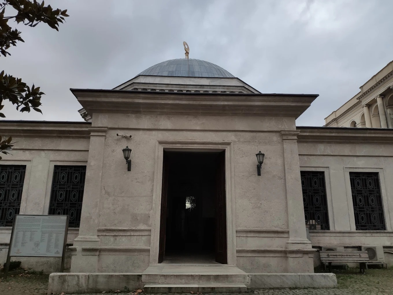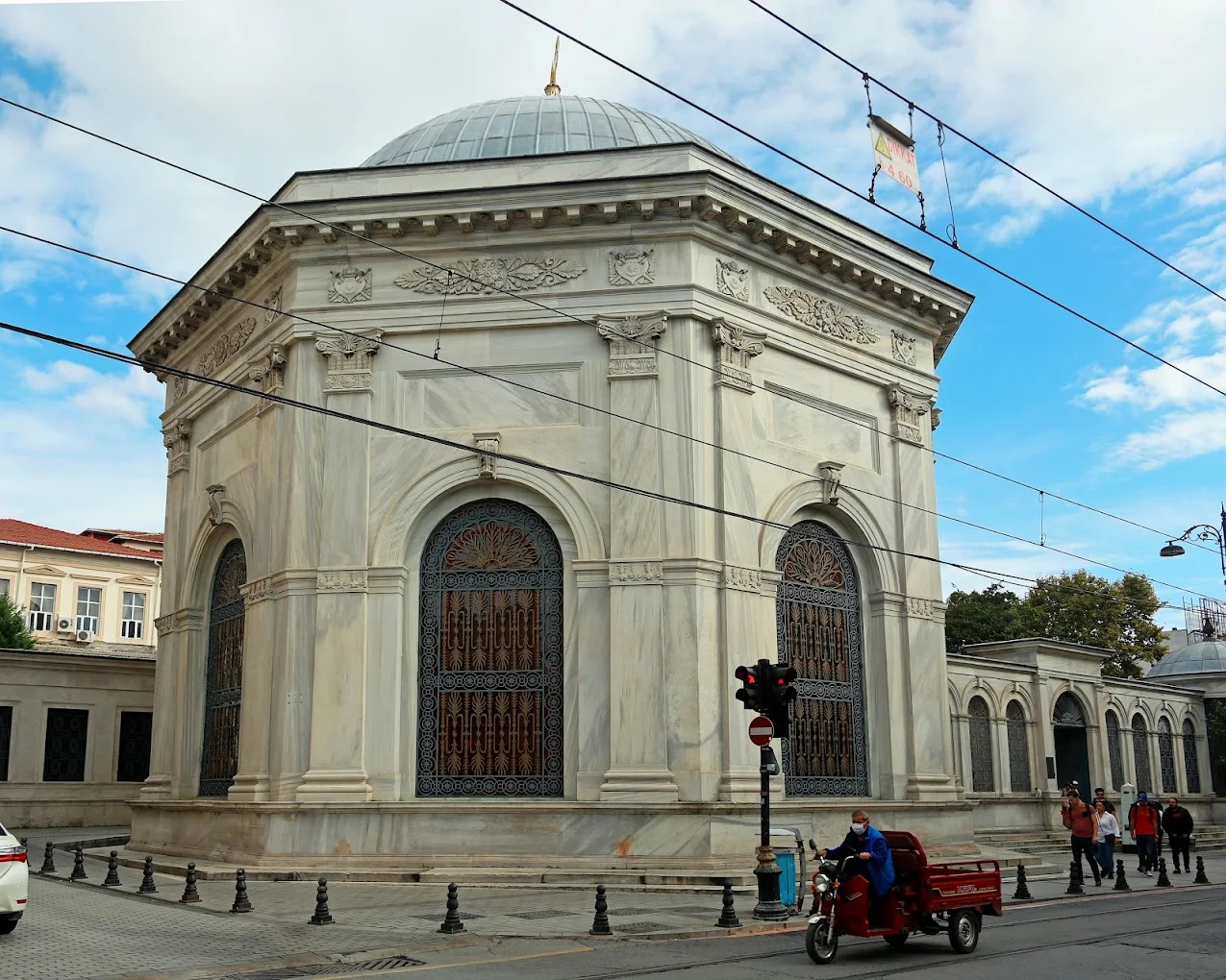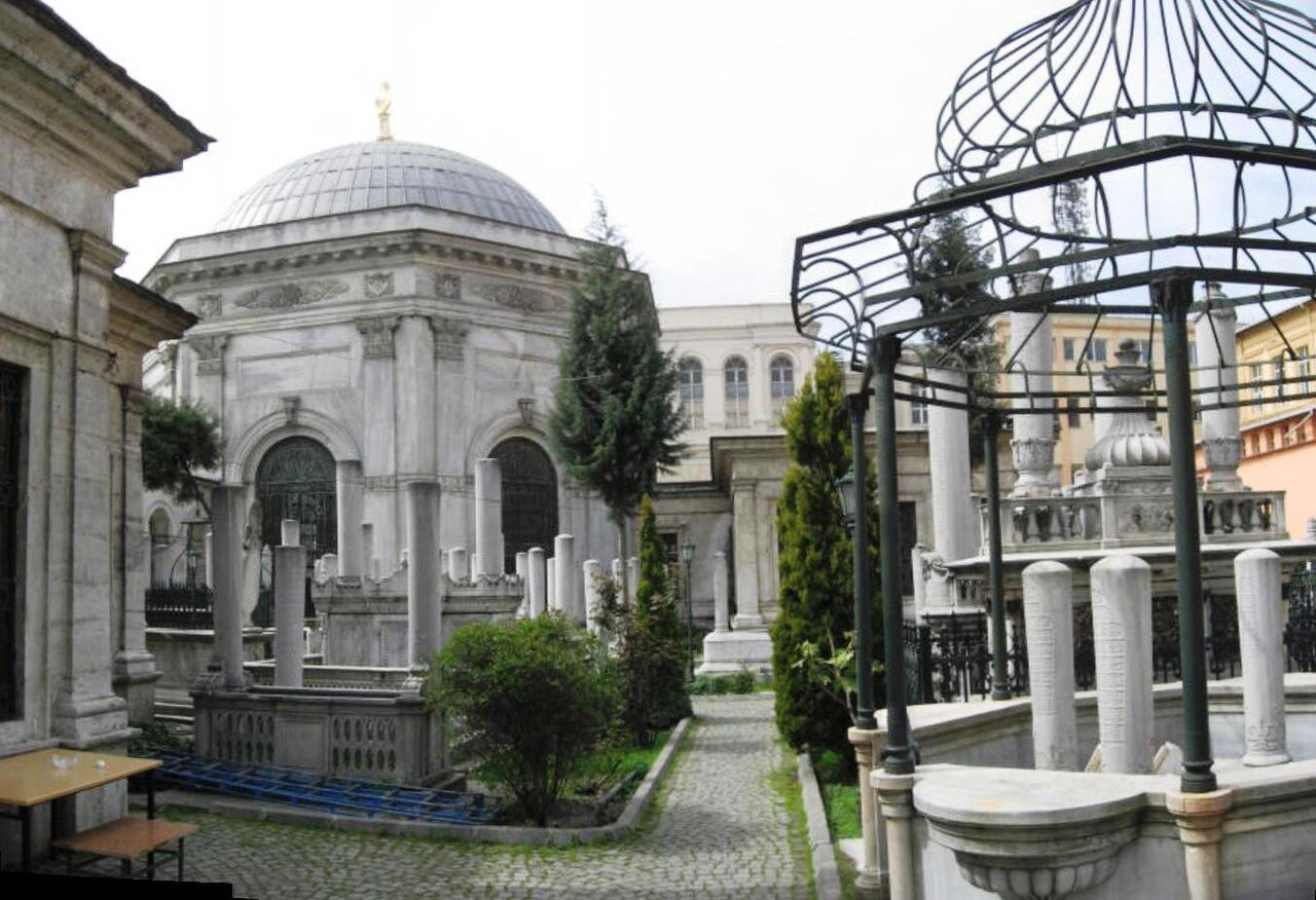 After Mahmud II's death in 1839, his son Abdülmecit, who succeeded him, immediately asked the architect brothers Ohannes Dadyan and Boğos Dadyan to build a tomb for his father. The land used for the construction of the tomb was allocated by Esma Sultan, Mahmud II's beloved sister. Esma Sultan had her own mansion on this land at the time. According to Can Selman, the tomb is the work of Engineer Abdülhalim Efendi, who served as Director of Public Works for two terms. Pars Tuğlacı, however, claims that the work is by Garabed Balyan. However, he has not provided any sources to support this claim. There are also studies that cite Ohannes and Bogos Dadyan as architects without any definitive evidence. Built on Divanyolu, on the site of the former palace of Esma Sultan, sister of Sultan Mahmud II, the structure consists of a tomb, a sebil (water fountain), a fountain, a hazire (cemetery), and guard rooms. The mausoleum also contains the tombs of Sultan Abdülaziz and Sultan Abdülhamid II. Engineer Abdülhalim Efendi built the Mekteb-i Maarif-i Adliye (School of Justice) and a library next to the mausoleum.