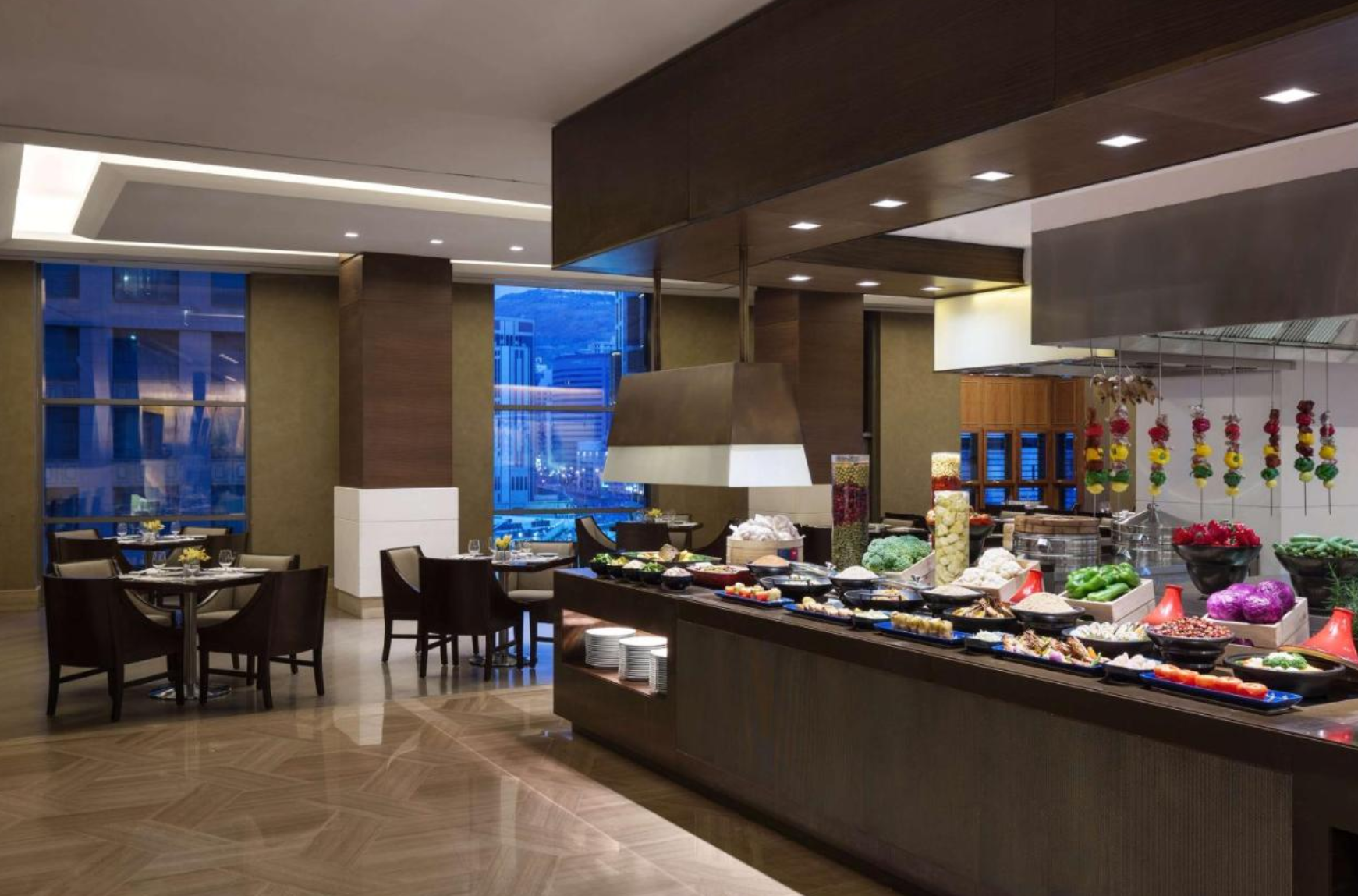 The hotel is just a 1-minute walk from the Masjid al-Haram. There are prayer areas for men and women on the parking floor of the hotel. The hotel is spread over 19 floors and offers 656 spacious rooms, including 25 suites. The size of the guest rooms and suites varies between 38-190 m². The Oasis, the Italian restaurant Al Forno, the Tea Lounge, the lobby lounge and the Al Tekkeya market, which offers fast and quality food especially for worshipers, are at the guests' disposal. Excellent facilities are available, including a separate state-of-the-art fitness center for men and women. Makkah Clock Tower is 400 meters from Jabal Omar Hyatt Regency Makkah. The nearest airport is King Abdulaziz Airport, 75 km away.