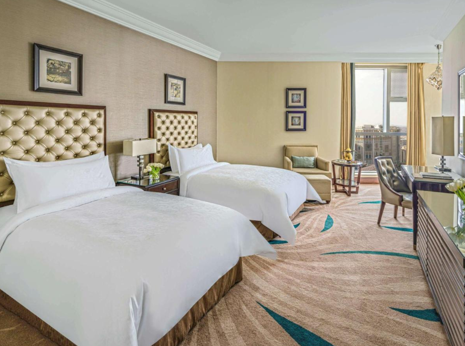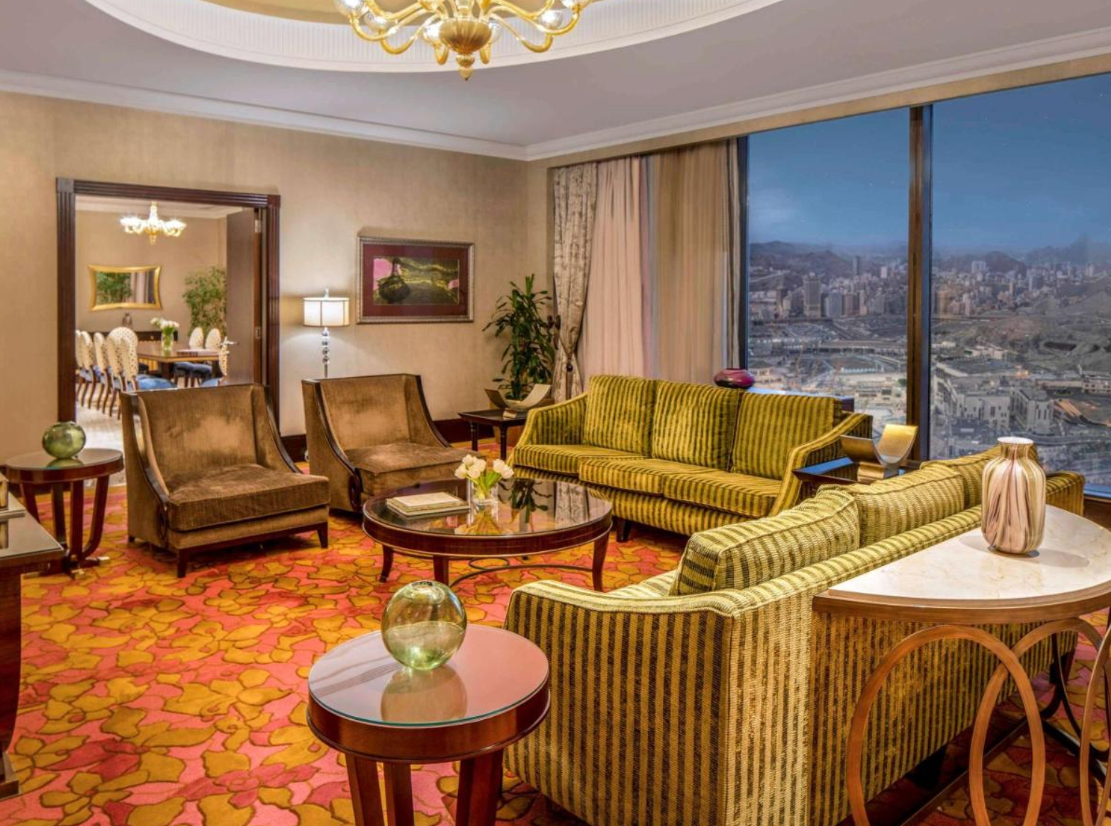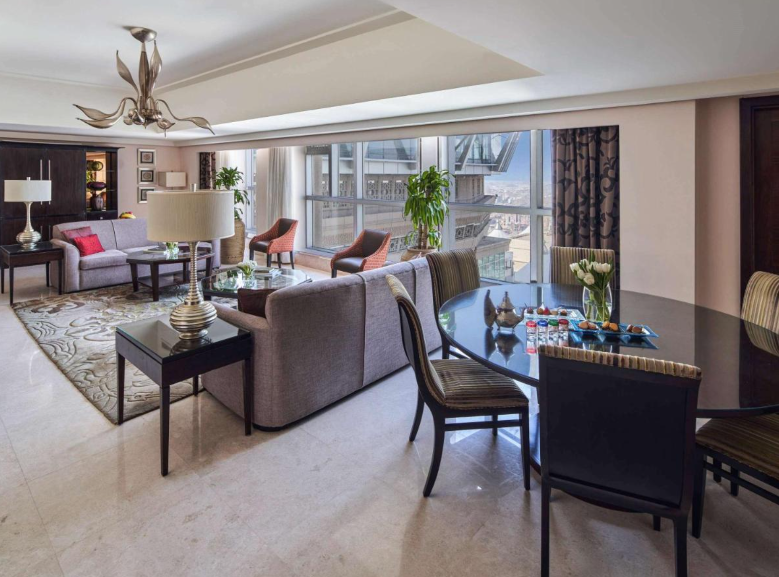 Located within the Mecca Clock Tower, just 100 meters from the Masjid al-Haram, this 76-floor luxury hotel is one of the tallest buildings in the world. The hotel has a fully equipped fitness centre, hot tub, sauna and steam room. Concierge services are available 24 hours a day. All accommodation at Fairmont Makkah Clock Royal Tower has an LCD TV and a spacious en suite bathroom with a bathtub. Rooms also have views of the Kaaba, Masjid al-Haram and Mecca city. The hotel's 9 modern restaurant options include the Indian inspired Bharat, the Lebanese lounge Al Dar and the rooftop restaurant Al Dira. Guests can benefit from secretarial services, meeting rooms with foyer area, extra-large ballroom where events and meetings can be held, and a live broadcast media room. The hotel is part of the Abraj Al Bait complex, which houses 4,000 shops and stores. Makkah Clock Tower Hotel is just a 2-minute walk from the Haram. Hira Cave is 6 km away.
