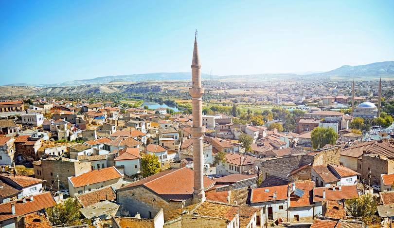 Avanos is a district of Nevşehir Province. The name of the settlement, which is 18 km north of Nevşehir, in ancient times was Venessa, Zuwinasa or Ouenasa. The tradition of ceramic making has been going on since the Hittites in the district, which has many pottery workshops. There are 3 villages in the Central sub-district, 10 villages in the Özkonak sub-district and 5 villages in the Topaklı sub-district. In 1926, linguist Emil Forrer read the name of the city of Zuwinasa on a tablet during his research in Boğazköy Hittite Royal Archives. Nenessa and Zu-Winasa turned into Venassa and Avanos, according to the studies of Nicole Thierry. It is mentioned as Avanos, Enes and Evenez in Ottoman documents. The marble sarcophagus unearthed in a Roman cemetery near Avanos, right on the edge of Kızılırmak, is interesting as it is the only sarcophagus unearthed to date in the central Cappadocia region. The sarcophagus was discovered by chance in 1971. Prof. near Sarılar town of Avanos. In the archaeological excavations carried out in Zank Höyük under the direction of Gökberk, ruins belonging to different cultures from the Old Bronze Age to the Late Roman Period were unearthed. In Avanos, there are Sarıhan caravanserai and Alaaddin Mosque, dating back to the 13th century Seljuk Period. It was affiliated with Kırşehir province until 1954, and its municipality was established in 1884. It became a district with the establishment of Nevşehir province in 1954. It is known that pottery has been made with a wheel in Avanos since the Hittites. This handicraft has been passed from tribe to tribe, from father to son, and has survived until today. Soft and oily clay soils from the mountains of Avanos and the old beds of Kızılırmak are sifted and kneaded thoroughly to turn them into mud. The desired bowl is made by skillfully shaping the clay on a loom called a wheel, which is turned by feet. The bowls produced in the workshops called workshops are dried first in the sun and then in the shade and then carefully baked in ovens fired with straw and sawdust at temperatures ranging from 800 degrees to 1200 degrees. Turkey's longest river, Kızılırmak, turns red in ancient times, worthy of its name, due to the tuffaceous, clayey soils it irrigates near Avanos. This feature has generally disappeared after the construction of dams. Food containers, water jugs, pots and jars for storing winter food, and water jars are well-known pottery products in the region... One of the important occupations in the district is viticulture. The grapes obtained are used for table purposes as well as for wine production in caves and natural warehouses. Grapes are very high in sugar. For this reason, especially handmade wines are in demand from all over the world. In addition to wine production, the region produces dried grapes, apricots and apples as winter nutrients. In addition, traditional foods such as molasses and meatballs are produced with the must obtained from grapes in the districts and villages. Eggplant production is common in Ayhanlar village of Avanos center. Most of the fresh vegetable products needs of Avanos and the surrounding region are met from this village. Fishing in the Kızılırmak River is also common. Although there are mostly carp fish, there are also fish species such as catfish, burr and coot.