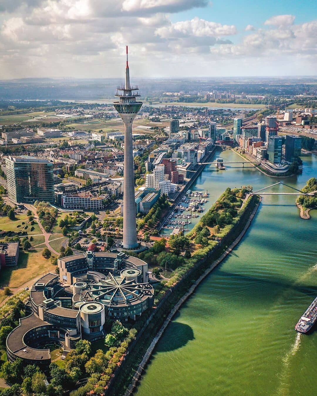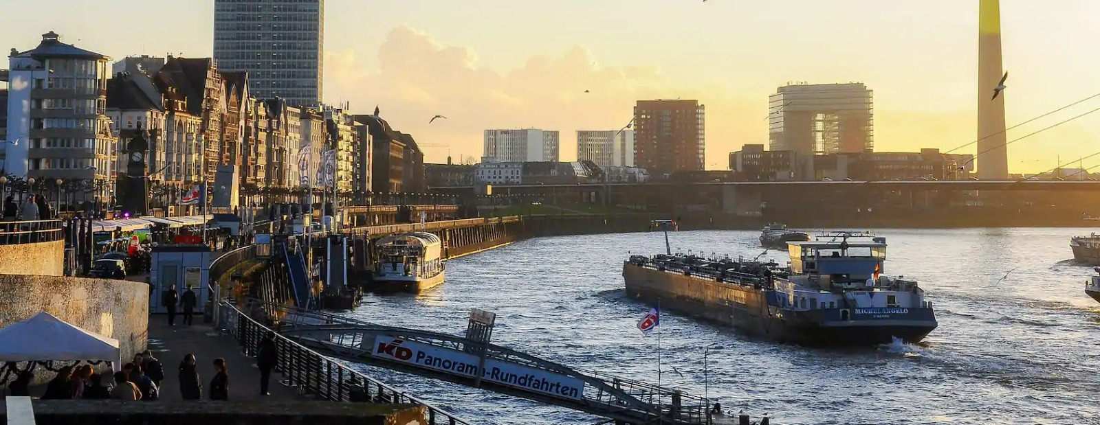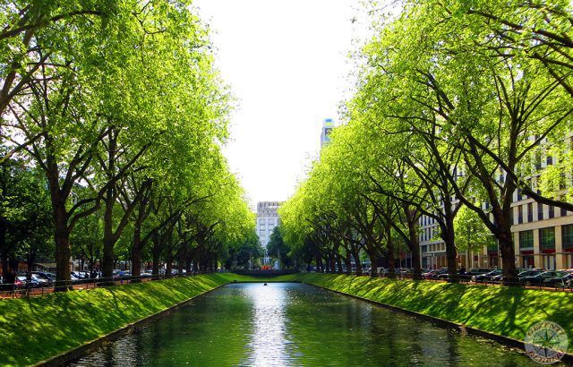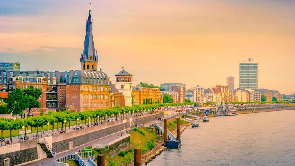 Düsseldorf is the capital of the state of North Rhine-Westphalia. It is also the headquarters of the Düsseldorf Province (Regierungsbezirk). It is a fashion and fair city established on the banks of the Rhine. To the north is the Ruhr Area, and to the south is Cologne. The Düssel Stream gives the city its name. Famous for its taverns and breweries in Düsseldorf's city centre, the Altstadt District is popularly referred to as the world's longest bar (Die längste Theke der Welt). Its population is around 620,000. The city is known for its world-famous industrial fairs. Fairs that shape the world industry are organized and serve various sectors. The state's largest airport, Düsseldorf International Airport, is located in this city.