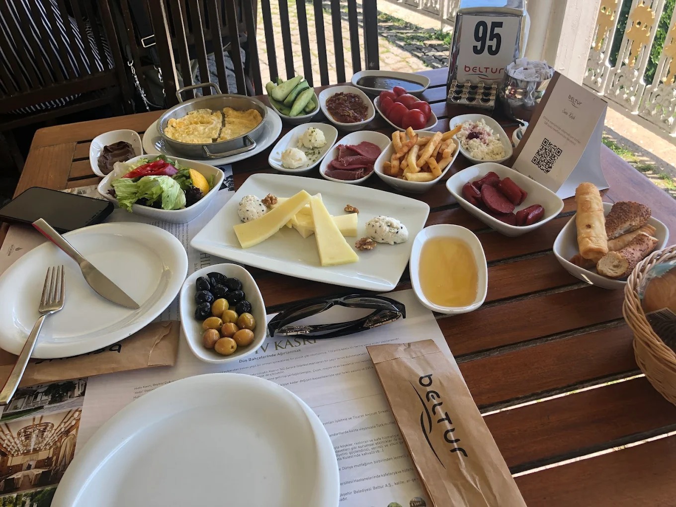 Outdoor terrace seating with Bosphorus views