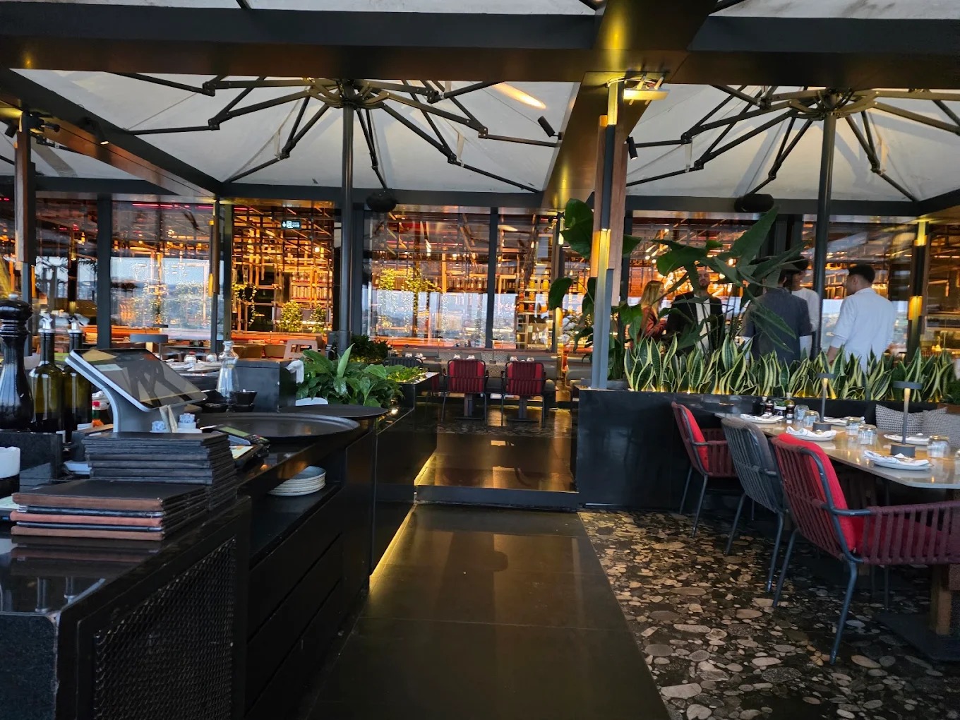 Designed with a modern and minimalist aesthetic, the venue features stylish interiors and a spacious terrace overlooking the Bosphorus. The architectural design emphasizes clean lines and contemporary luxury, enhancing the waterfront dining experience.