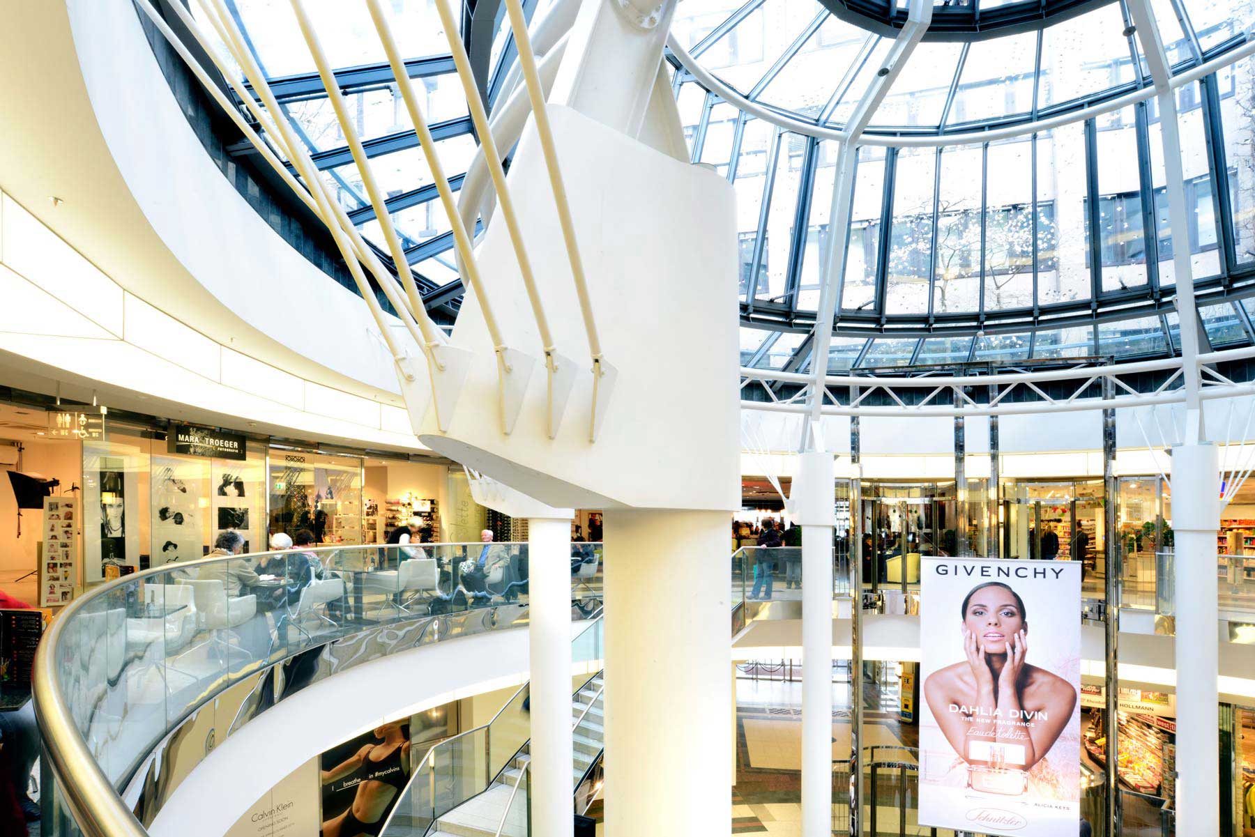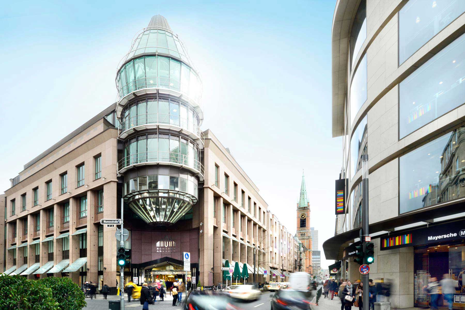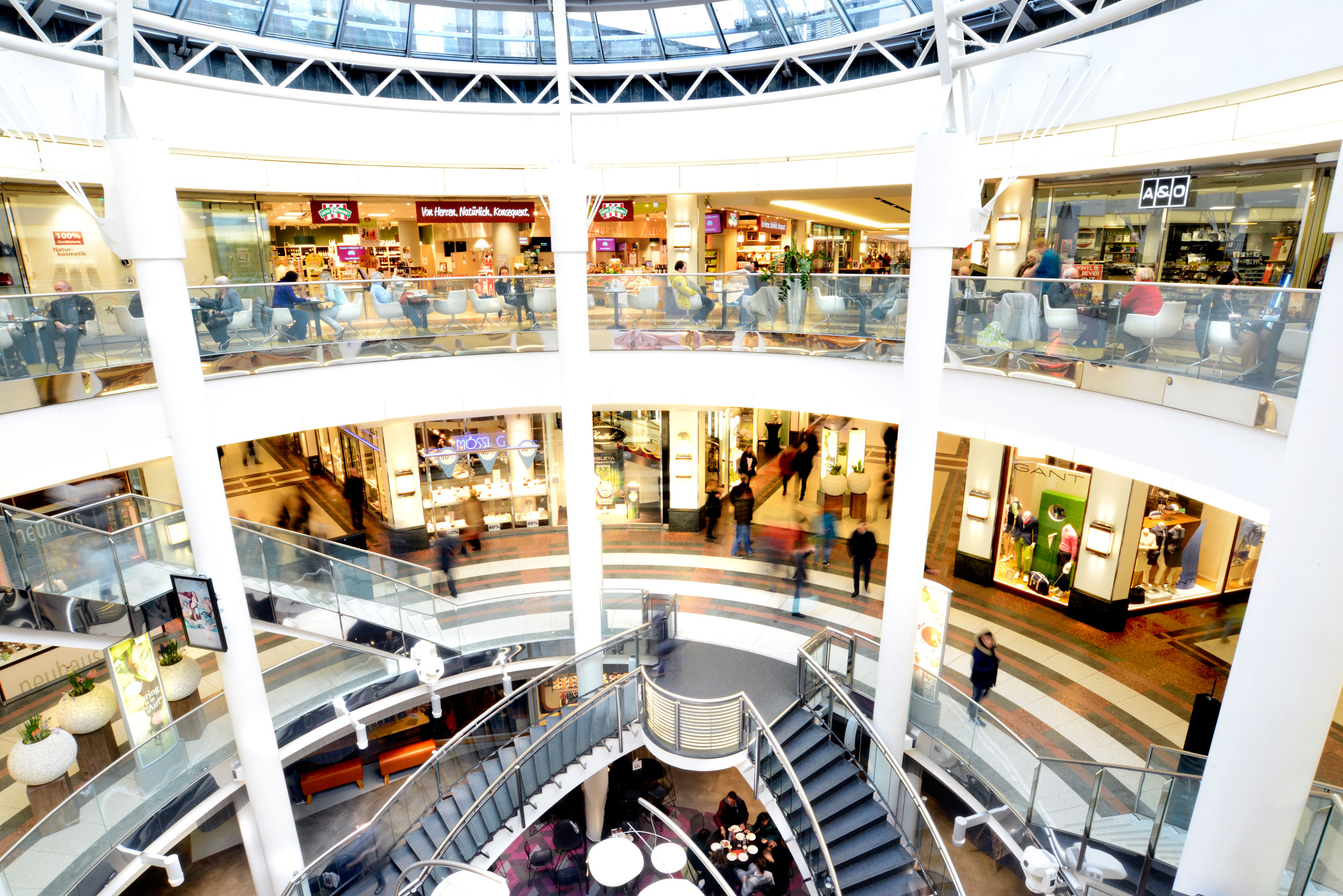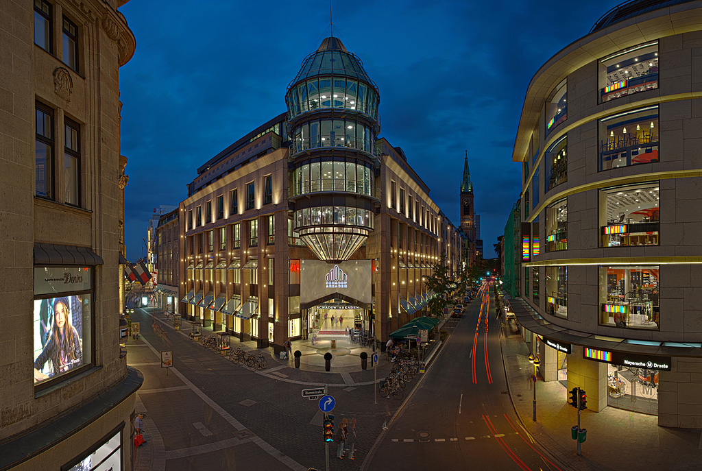 Es befindet sich in Düsseldorf, Deutschland, und ist ein elegantes Einkaufszentrum mit 60 Geschäften, internationalen Restaurants und einem Still-/Experimentierraum.