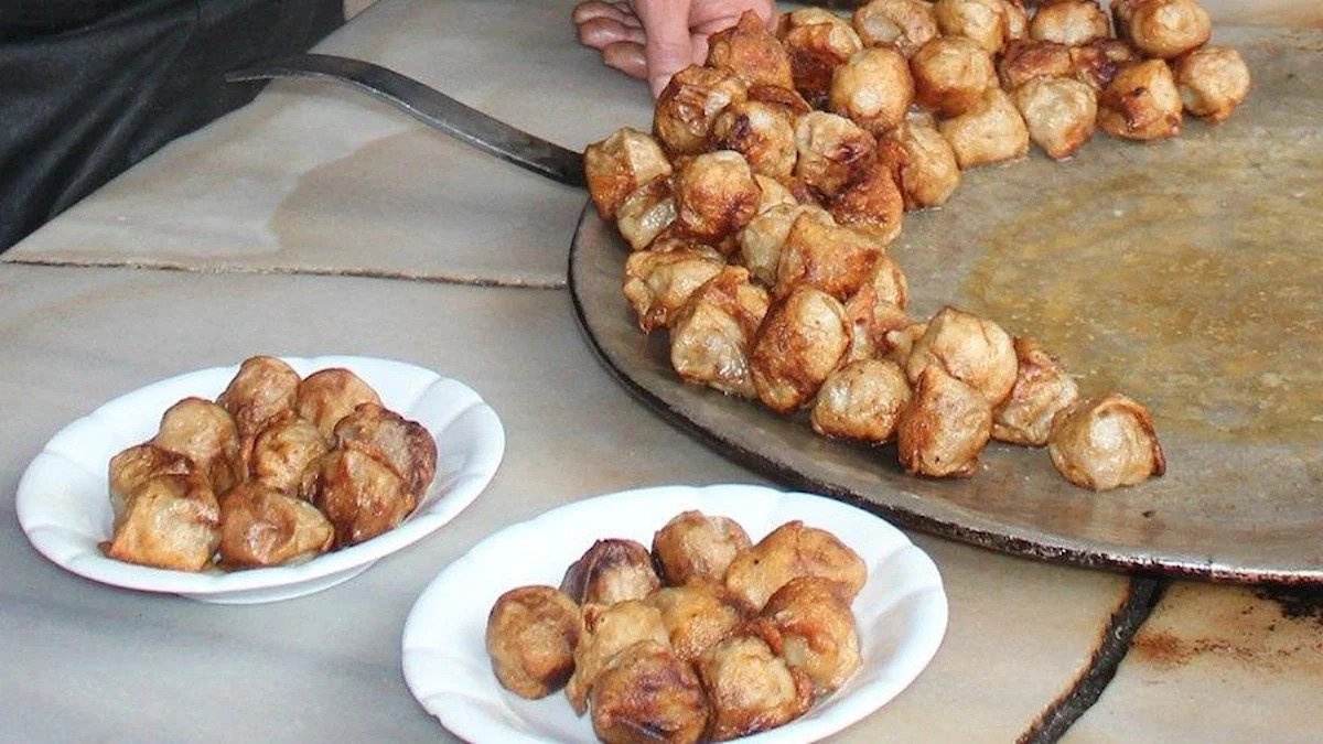 After the dough is kneaded, it is thinly rolled out. It is divided into small squares. The prepared dough is kept in olive oil for a while and rested. The ingredients prepared by mixing minced meat, onion, black pepper, salt, parsley and cumin in a separate bowl are placed in the form of a bundle on the dough. The rolled cover is fried in a pan, boiling broth is poured on it during service.