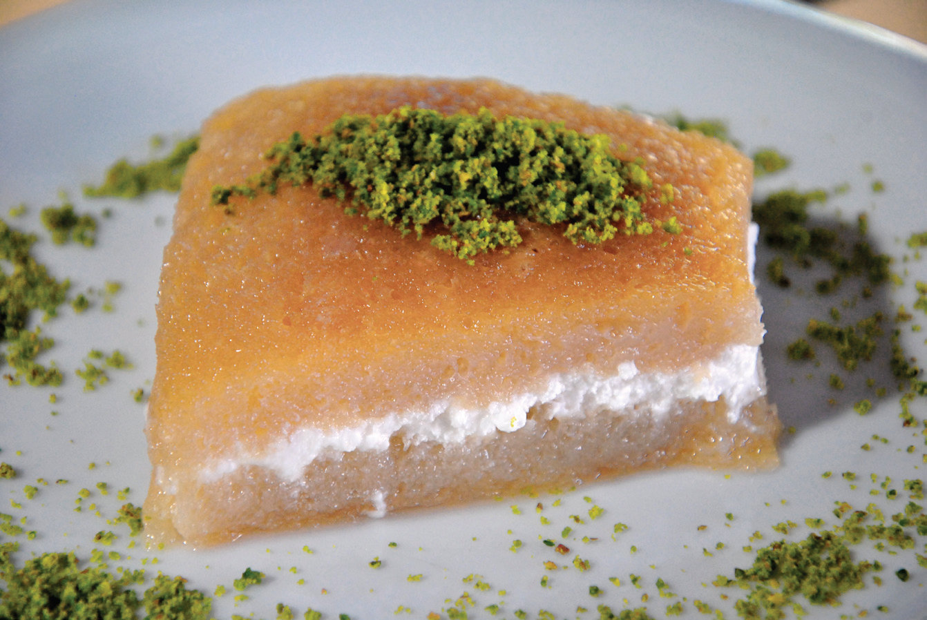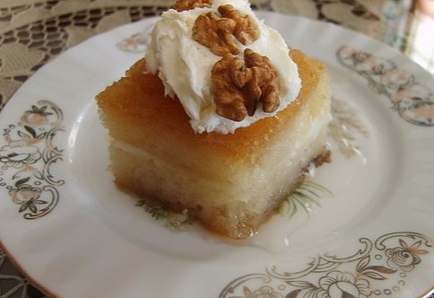 In a pot of sufficient size, water, sugar and flower water are added. It is made into syrup. Bread dough has two layers. The floors are wetted with the prepared syrup. Then, curd, almond or walnut kernels and some sugar are placed on the place where sherbet is poured. After all these ingredients are placed, the separate layer of the bread is covered on it. Then, the syrup, which is heated over low heat, is poured slowly over the kadayif with a spoon. Pouring is carried out until the kadayif syrup is absorbed. Afterwards, the cooling process is carried out in the refrigerator.