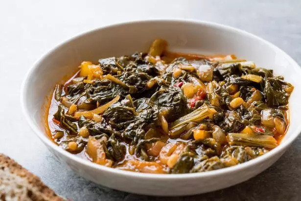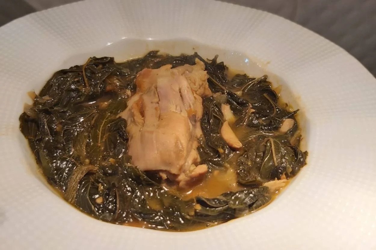 Molehiya is a dish prepared from the leaves of the Molehiya plant, which grows in the Middle East and North Africa. This dish, which is very popular in Cypriot cuisine, is enriched with bone-in chicken. Served in a deep plate, this dish is served with rice and pickles. First, Molehiya leaves are soaked in hot water. Then the leaves are washed with cold water. Olive oil is put in the pot and the chickens are cooked a little. Chickens are removed from the pot and rested on a plate. In the same pot, fry the crushed garlic and chopped onion. When the onions turn color, chicken and Molehiya leaves are added and frying is continued. The tomatoes are diced. It is prepared by mixing tomato paste with approximately 300 ml of water. Tomatoes and tomato paste are added and left to cook with the lid closed.